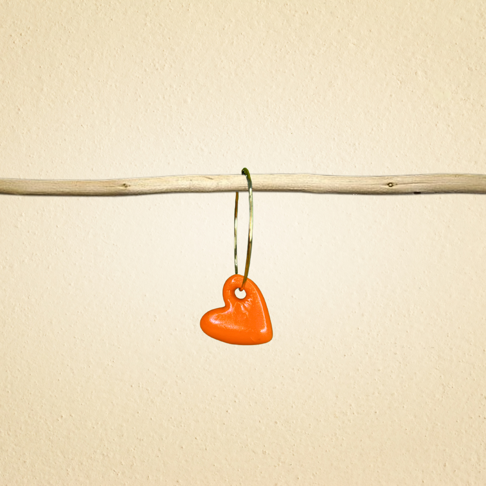 Pendentifs Petits Cœur (vendus par paire) en pâte Fimo, couleur orange, entièrement faits main. Chaque pendentif est verni pour une finition brillante et durable.